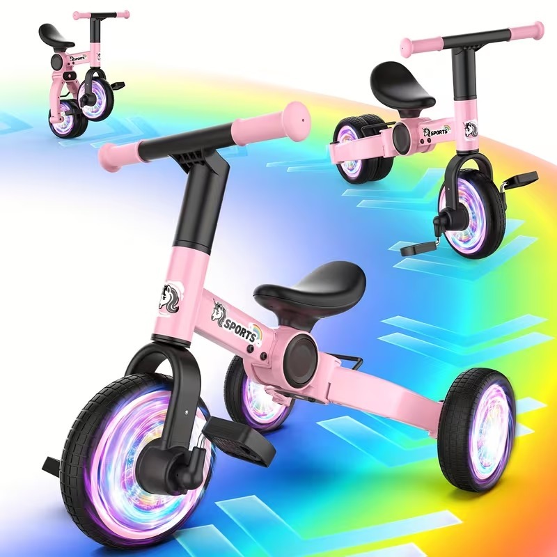 This 4-in-1 baby balance bike and toddler tricycle is designed to support early riding practice through different growth stages. The convertible design allows use as a balance bike, tricycle, or pedal-assisted ride-on, adapting to a child’s developing coordination and comfort.